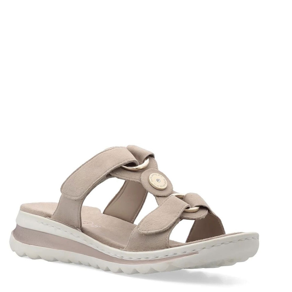 Γυναικεία δερμάτινα ανατομικά πέδιλα ARA με μεταλλικό διακοσμητικό στο μπροστινό μέρος. Διαθέτουν εξωτερική αντιολισθητική σόλα για σταθερό πάτημα. Ιδανικά για τις καλοκαιρινές σας βόλτες.