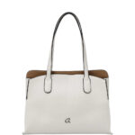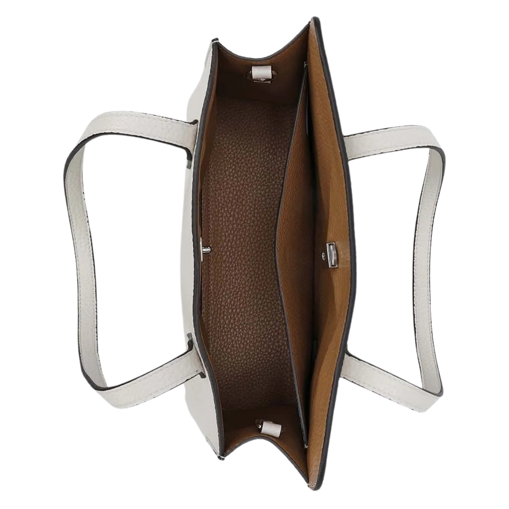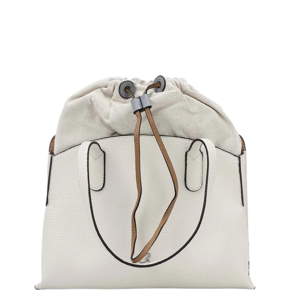 Γυναικεία τσάντα ώμου με διπλά χερούλια, από τεχνόδερμα υψηλής ποιότητας. Εσωτερικά περιέχει ένα υφασμάτινο πουγκί που κλείνει με κορδόνια. Διαθέτει αποσπώμενο λουράκι και κλείνει με ασημί κούμπωμα.