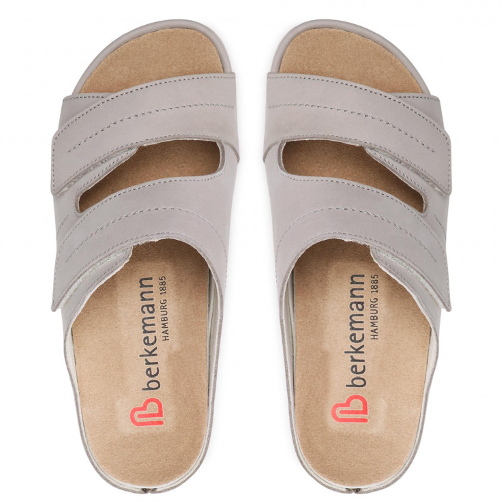 Γυναικείες δερμάτινες ορθοπεδικές παντόφλες-πέδιλα BERKEMANN με αυτοκόλλητα velcro για εύκολη εφαρμογή και αποσπώμενο δερμάτινο πάτο 5 φάσεων, ο οποίος επιτυγχάνει αναπαραγωγή της φυσικής ανατομίας του πέλματος με συνεχή εκγύμναση. Προσφέρουν σταθερή στήριξη του ποδιού και ισορροπημένη στάση σώματος