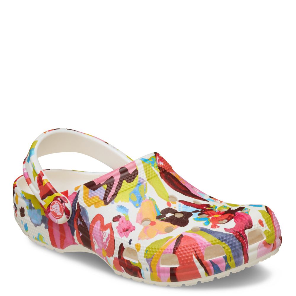 Άνετα clogs CROCS με ζωηρό λουλουδάτο σχέδιο, ιδανικά για όσους συνδυάζουν ξεχωριστό στυλ με χαλαρή καθημερινή άνεση.