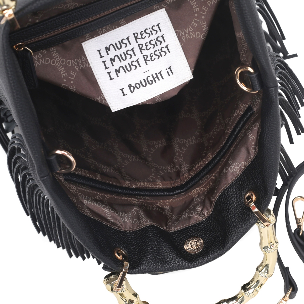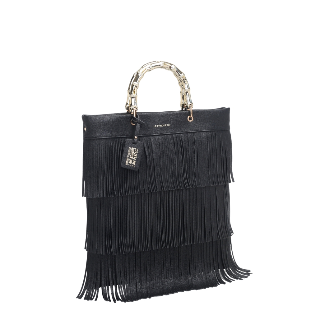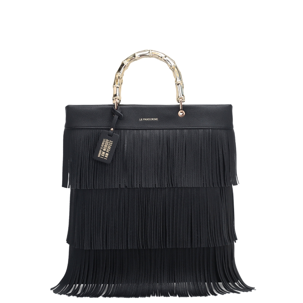 Κομψή, μεγάλη τσάντα με κρόσσια μπροστά και εντυπωσιακό μεταλλικό χερούλι με bamboo-effect, ιδανική για καθημερινή χρήση.