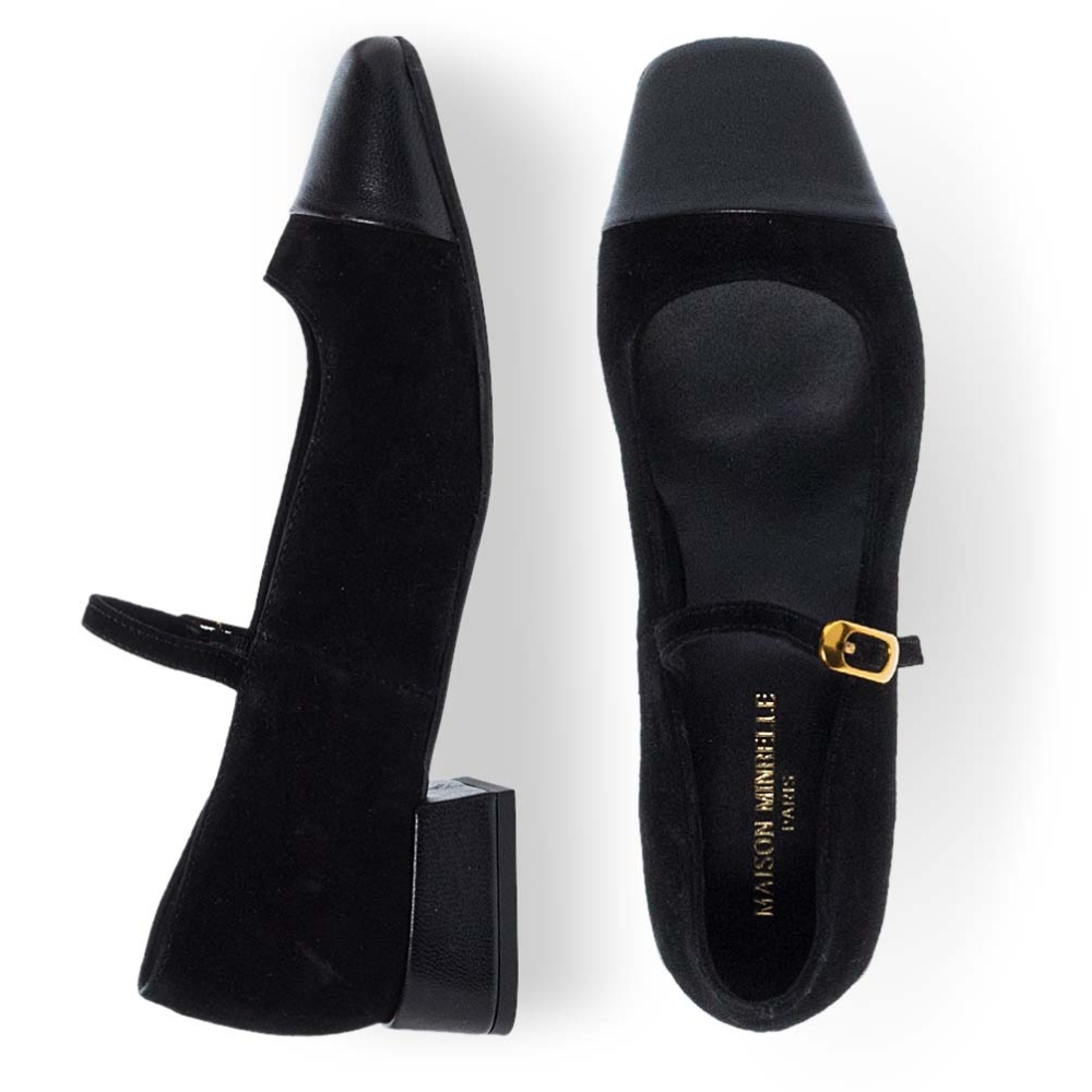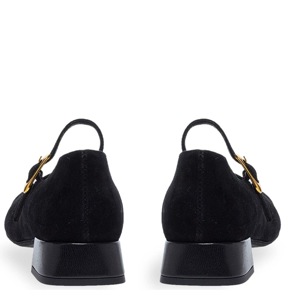 Γυναικεία δερμάτινα mary jane παπούτσια MAISON. Γυναικεία suede mary jane παπούτσια, με τετράγωνη μύτη και block τακούνι. Διαθέτουν λουράκι με χρυσή αγκράφα για κομψότητα..