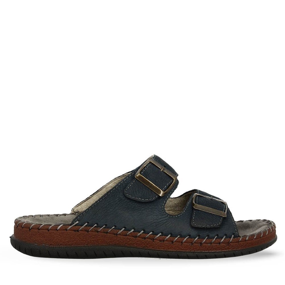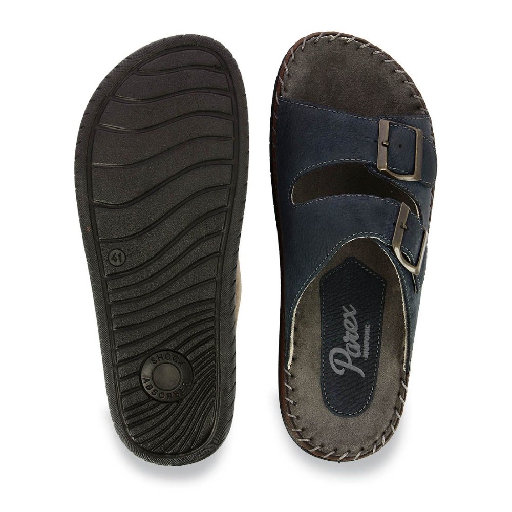 Ανδρικές παντόφλες Parex για σταθερό και ξεκούραστο βάδισμα καθ’όλη τη διάρκεια της ημέρας. Οι εξωτερικές ραφές προσδίδουν στυλ στο συγκεκριμένο σχέδιο και σε συνδυασμό με τον δερμάτινο μαλακό του πάτο, το κάνουν ιδανικό για τους περιπάτους και τις απογευματινές σας βόλτες.