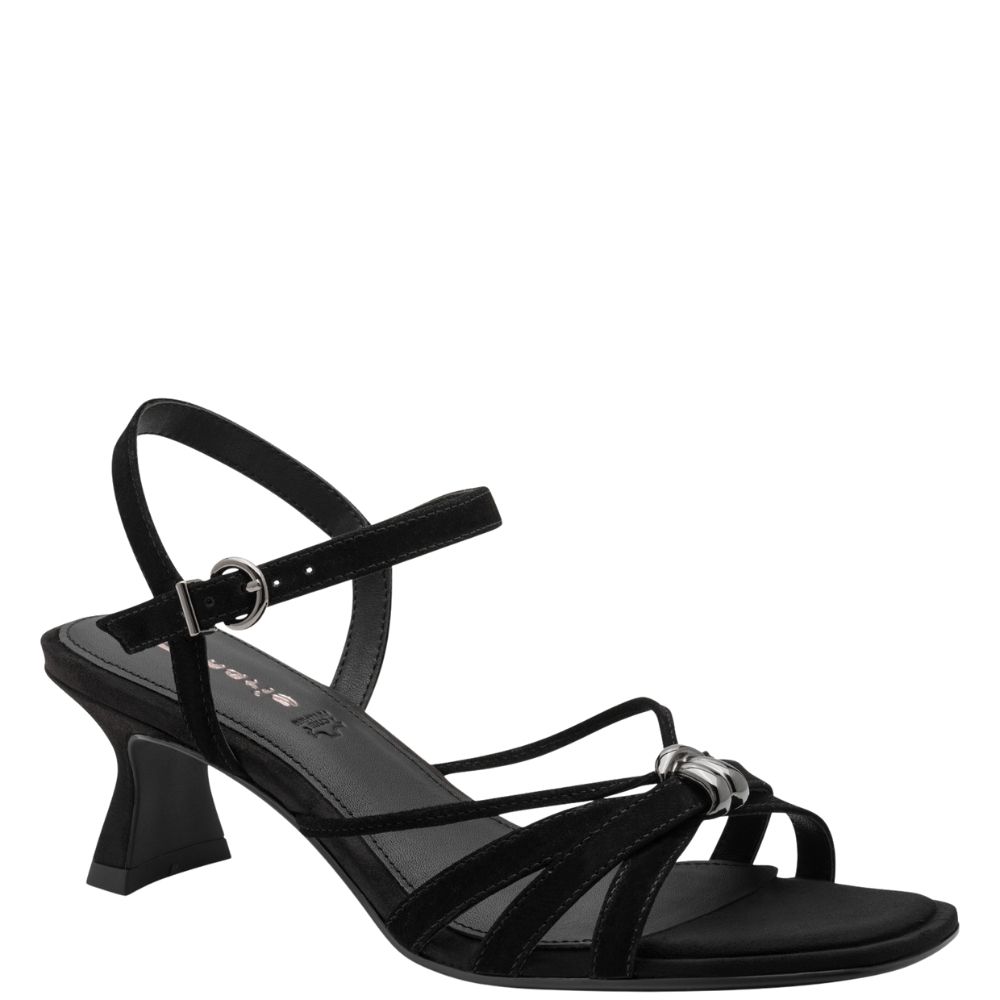 Κομψά γυναικεία πέδιλα Tamaris σε μαύρο χρώμα, με διαχρονικό σχεδιασμό και σταθερό τακούνι που προσφέρει άνεση και σιγουριά στο περπάτημα. Ιδανική επιλογή για καθημερινές αλλά και πιο προσεγμένες εμφανίσεις.