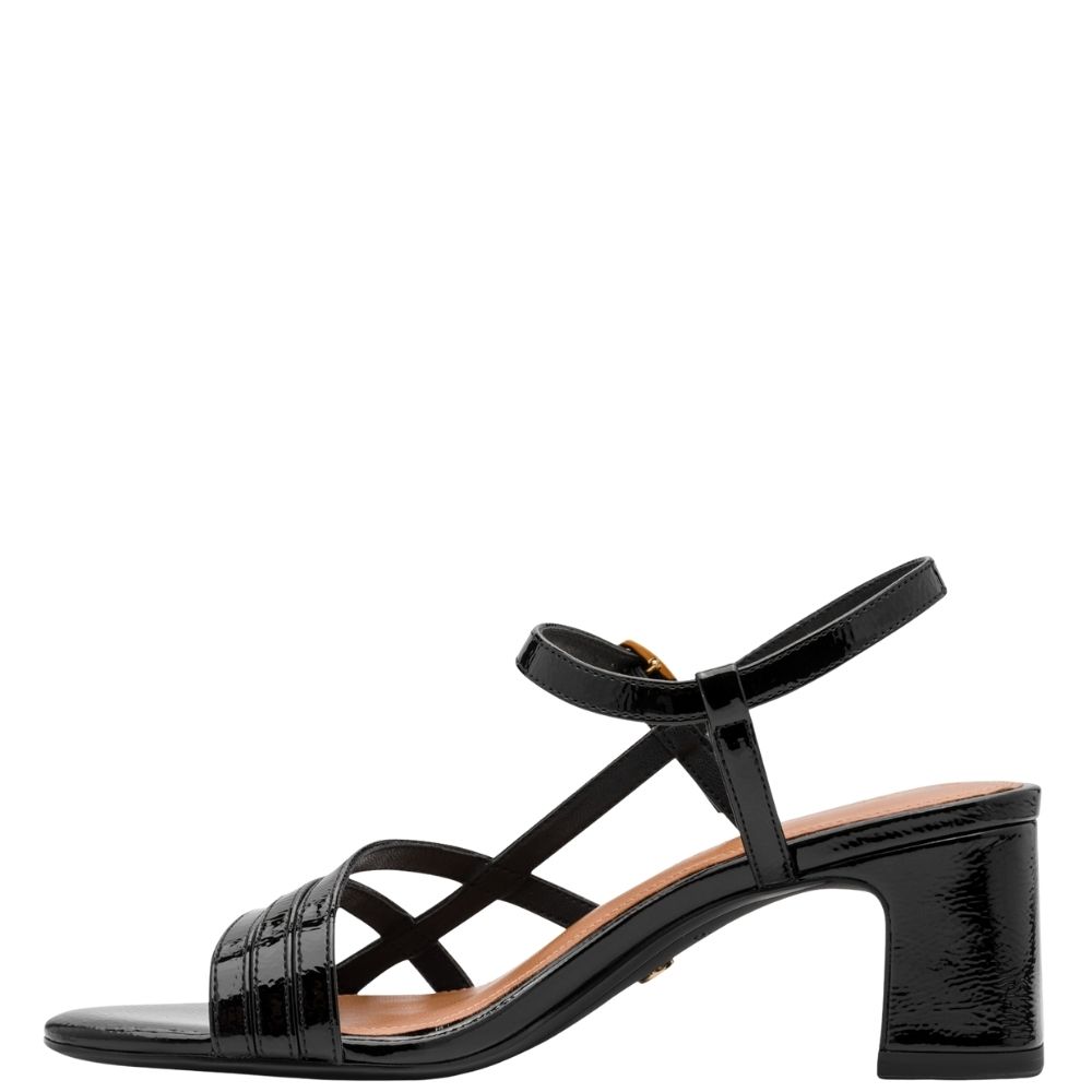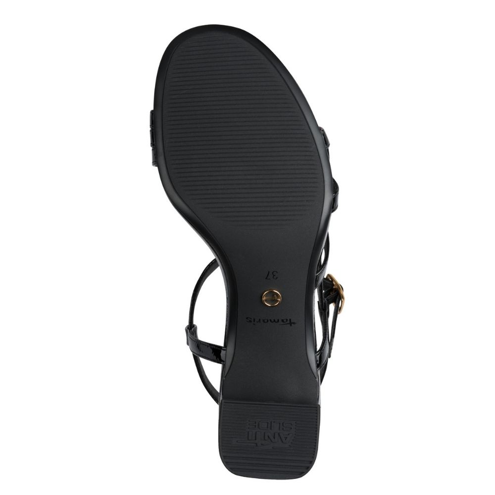 Κομψά γυναικεία πέδιλα Tamaris σε λουστρίνι, με διακριτική λάμψη και σταθερό τακούνι. Ιδανική επιλογή για πιο επίσημες αλλά και καθημερινές εμφανίσεις.