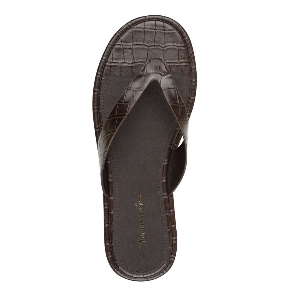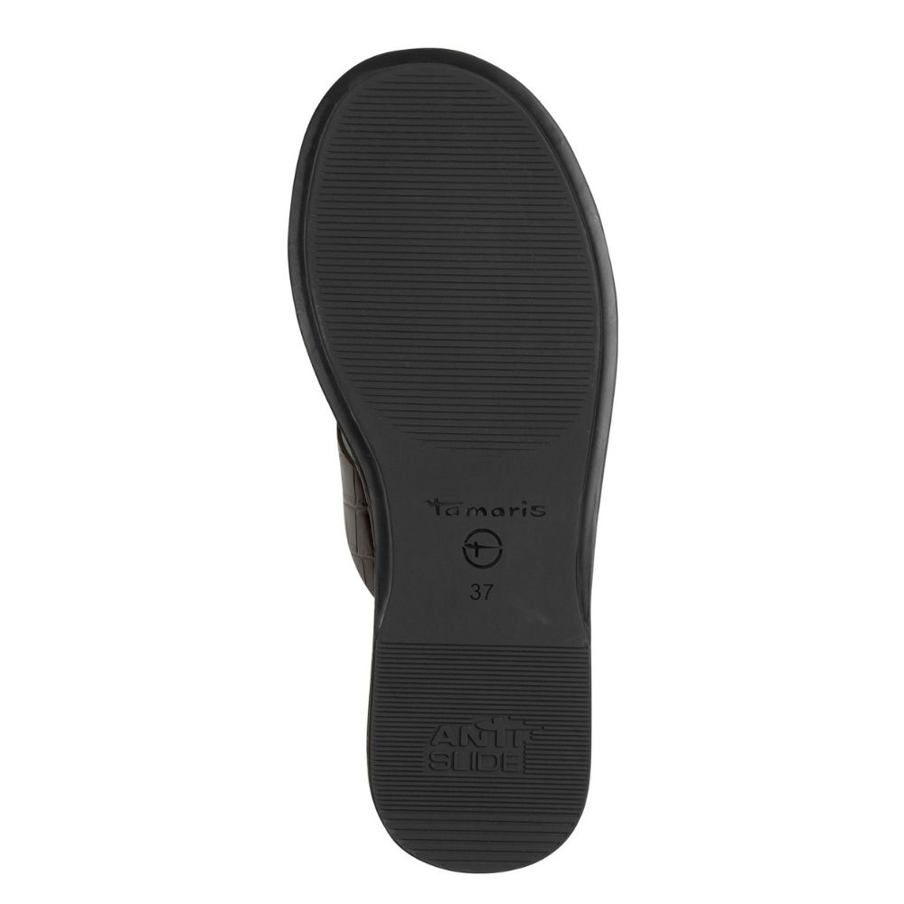 Minimal γυναικεία φλατ σανδάλια Tamaris με υφή croco. Άνετα και μαλακά, αποτελούν ιδανική επιλογή για καθημερινές καλοκαιρινές εμφανίσεις
