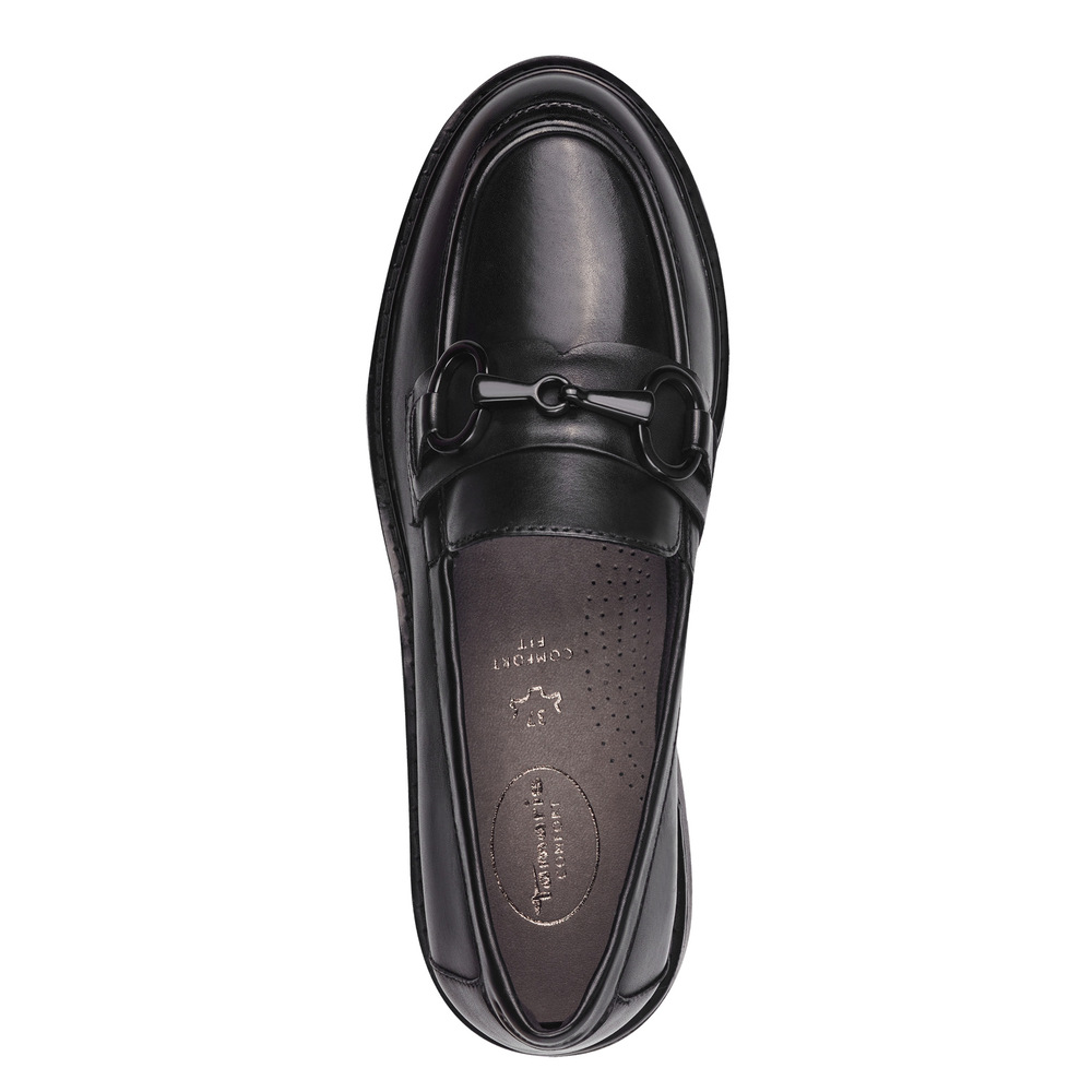 Γυναικεία μοκασίνια Tamaris Comfort σε μαλακό δέρμα και με δερμάτινο πάτο, διακοσμημένα με αλυσίδα στο μπροστινό μέρος. Προσφέρουν την υψηλότερη δυνατή άνεση και εξασφαλίζουν ξεκούραστο πάτημα που θα συμπληρώσουν άψογα το καθημερινό σας outfit!
