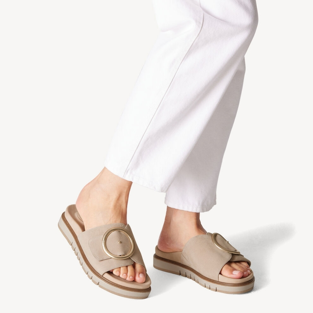 Γυναικεία πέδιλα TAMARIS COMFORT με μεγάλη χρυσή αγκράφα! Η ιδανική λύση για όλες σας τις καλοκαιρινές εμφανίσεις!